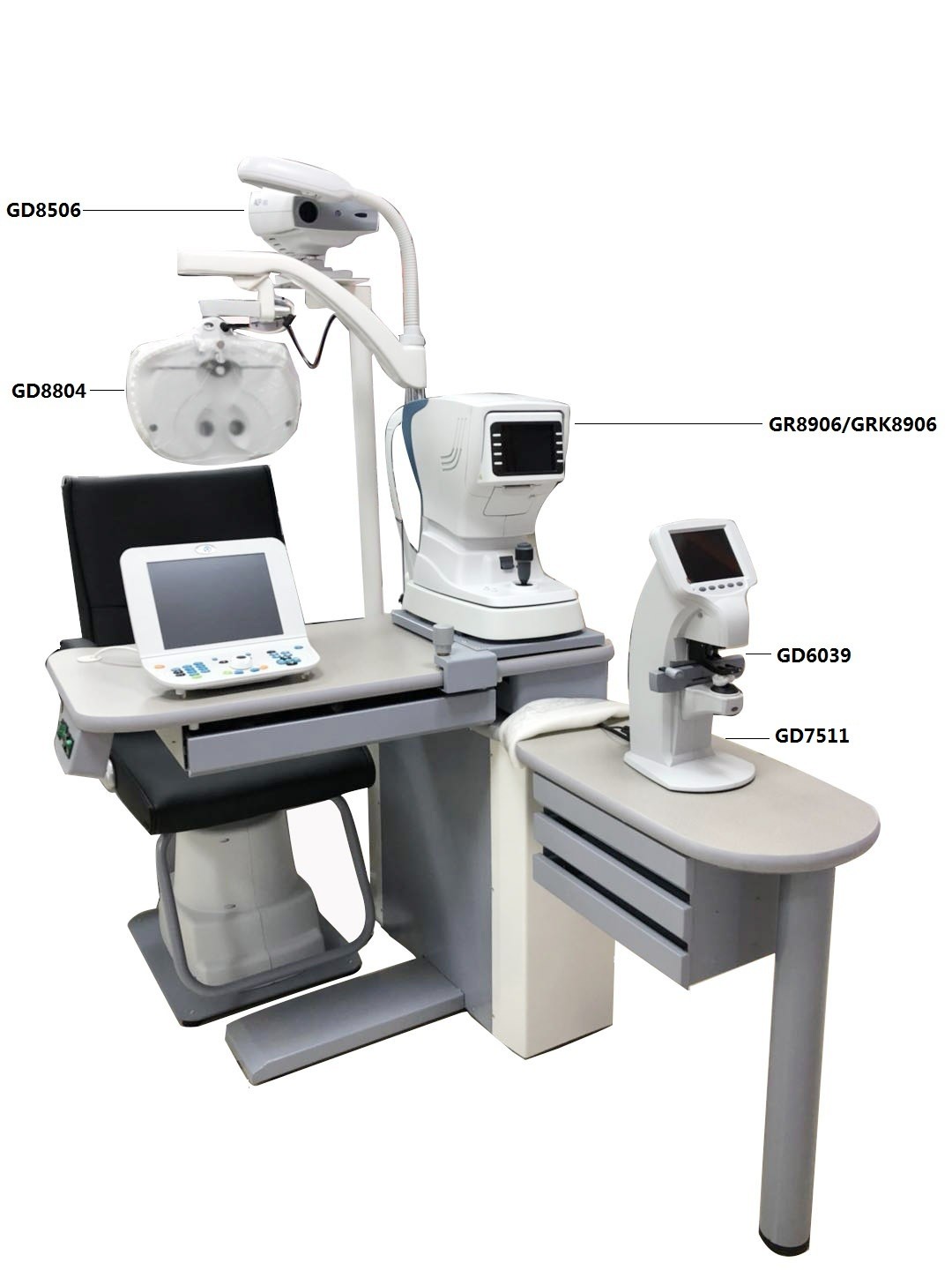 1. 眼科ユニット -GD7511: フォロプターアームは上下、回転調整可能。レンズメーター配置用の追加テーブル;